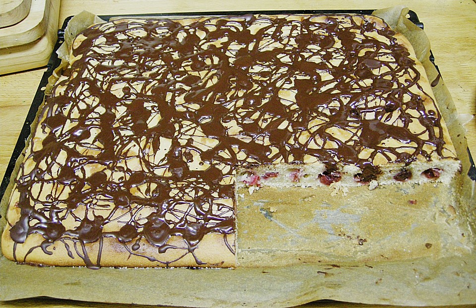 - Das Blech in den Ofen schieben und ca. 20 - 30 min. backen, Stäbchenprobe machen.