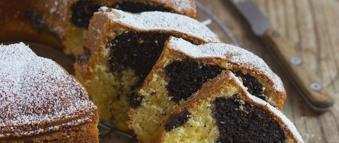 - 3 Teile heller Teig, 2 Teile mit Kakao und den 3 EL MIlch verrühren